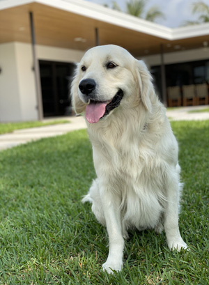 Raised on Singer Island, Henry is an English Cream Golden Retriever whose office duties include greeting visitors, napping, and accepting treats.