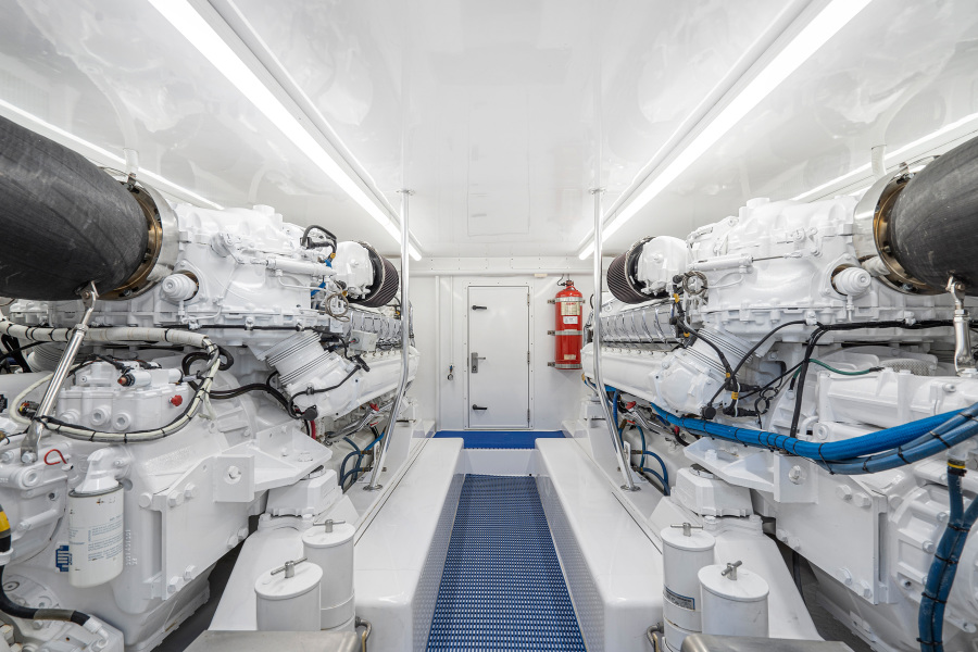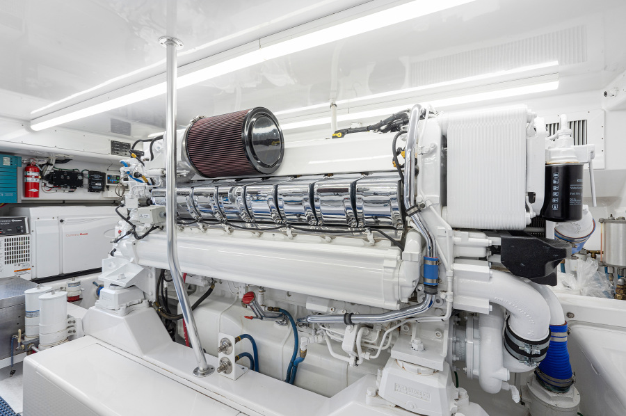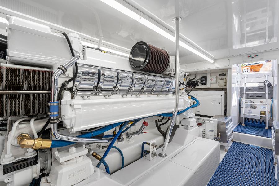 The engine room shows perfectly - faired and painted to perfection. Every pump, hose, and anything pertaining to this area is like new. Also, the complete 3000 hr service was completed in March of 2020.