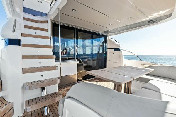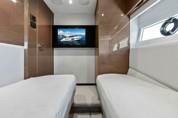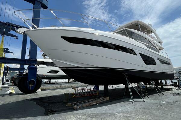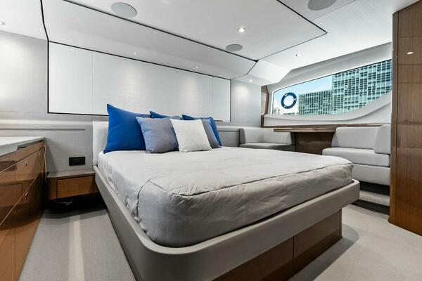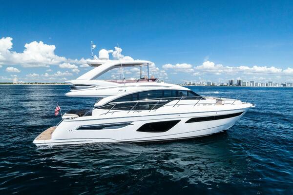 This stunning 2022 Princess F55 is fully loaded, professionally maintained, and aggressively priced to sell. Step aboard and experience luxury at sea like never before. From her elegant teak decking to her expansive flybridge, this yacht is designed with space, style, and performance in perfect harmony. The 58.4 sq. ft. flybridge is a haven for relaxation and entertainment, featuring a convertible sunbed, twin helm seats, a wet bar, and thoughtfully designed dining spaces. Her signature wraparound windscreen and vast panoramic saloon windows flood the interior with natural light while providing uninterrupted ocean vistas. Below deck, expansive hull windows continue the bright and airy ambiance, enhancing every stateroom with a sense of open luxury. Powered to reach exhilarating speeds, the F55 offers not only remarkable performance but exceptional handling and stability, thanks in part to the SeaKeeper 9 Gyro Stabilizer. Inside, the Princess F55, showcases a refined Silver Oak Gloss interior, offering a sophisticated contrast of textures and finishes. The spacious salon is appointed with a U-shaped sofa, with the versatility of a folding-leaf dining or coffee table facing a loveseat. Accommodations include a full-beam master stateroom, a luxurious forward cabin, and a flexible starboard guest cabin that converts from twin beds to a double, all with ensuite bathrooms.